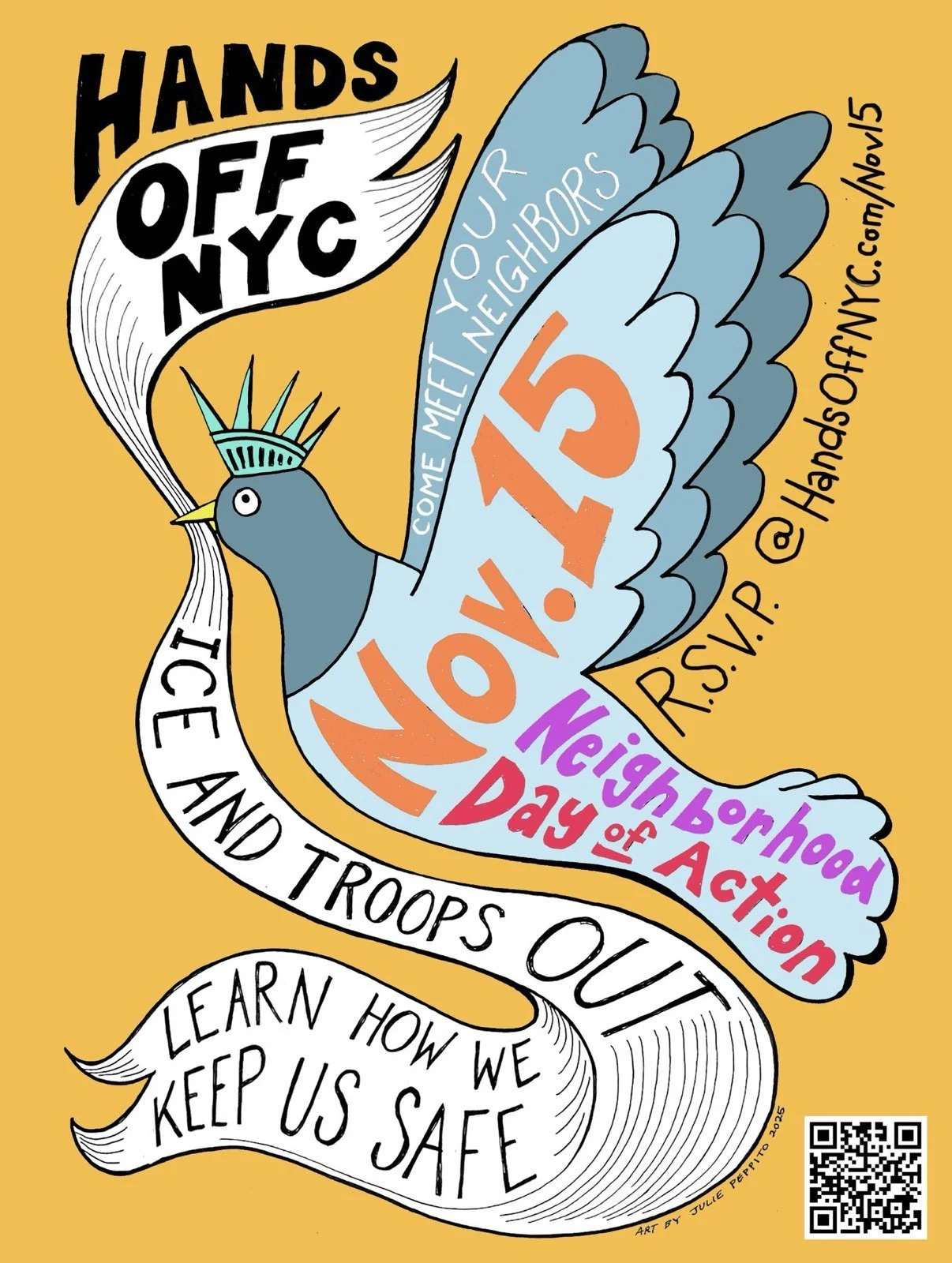 Location: CU STANDS UP will be on the sidewalk at W. 116th St & Broadway handing out free apple cider and whistles! Stop by our table for a minute to learn how you can help protect our community in the event of increased federal presence in NYC.